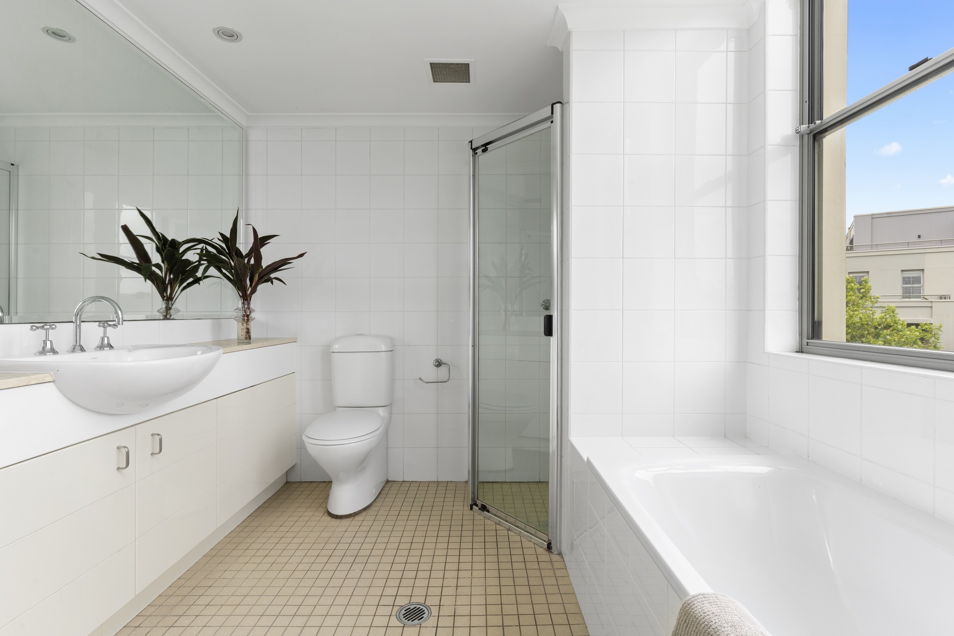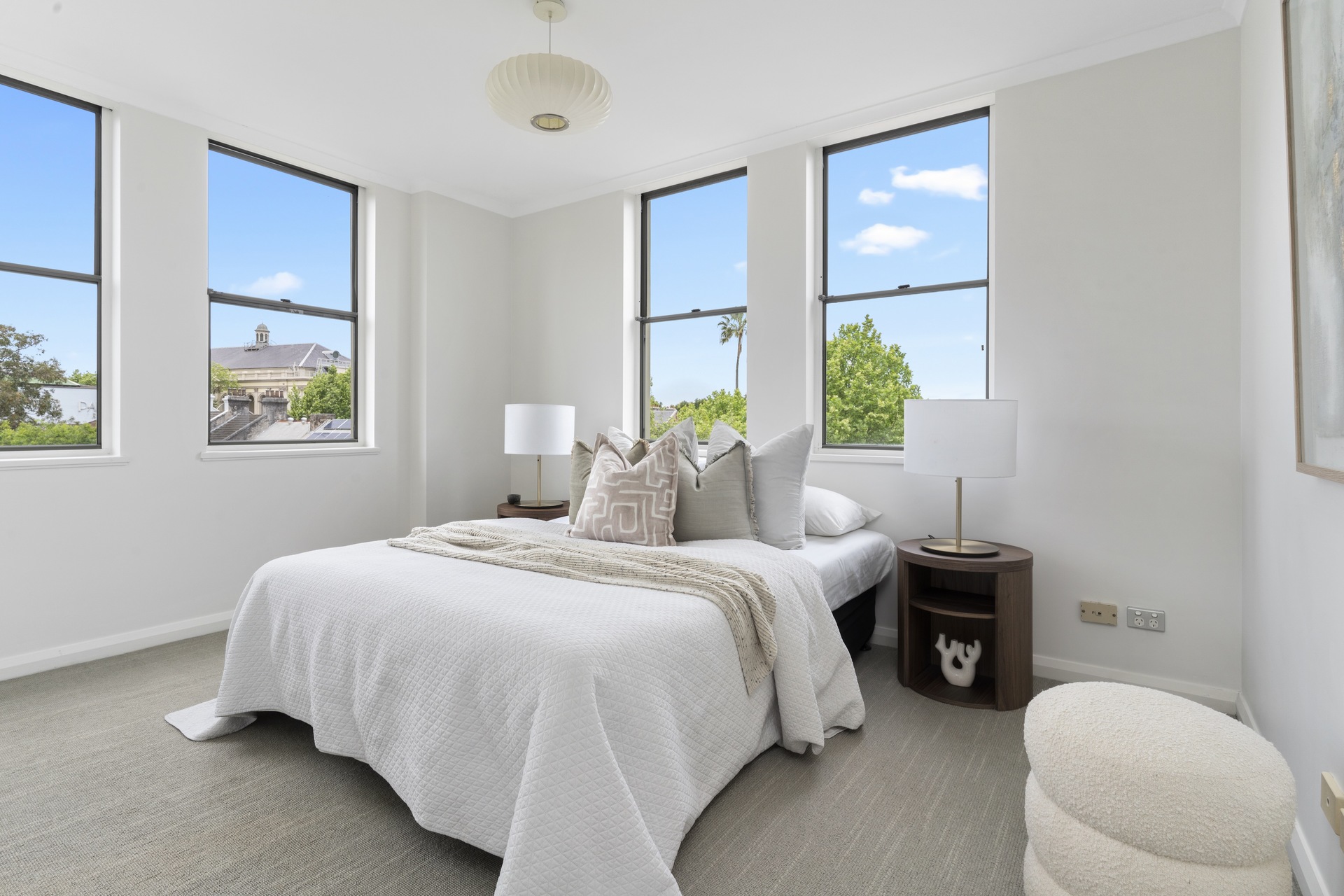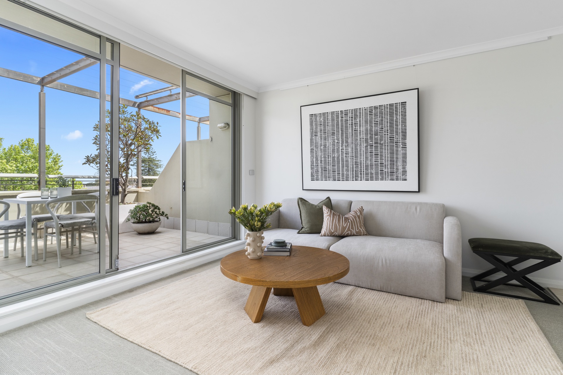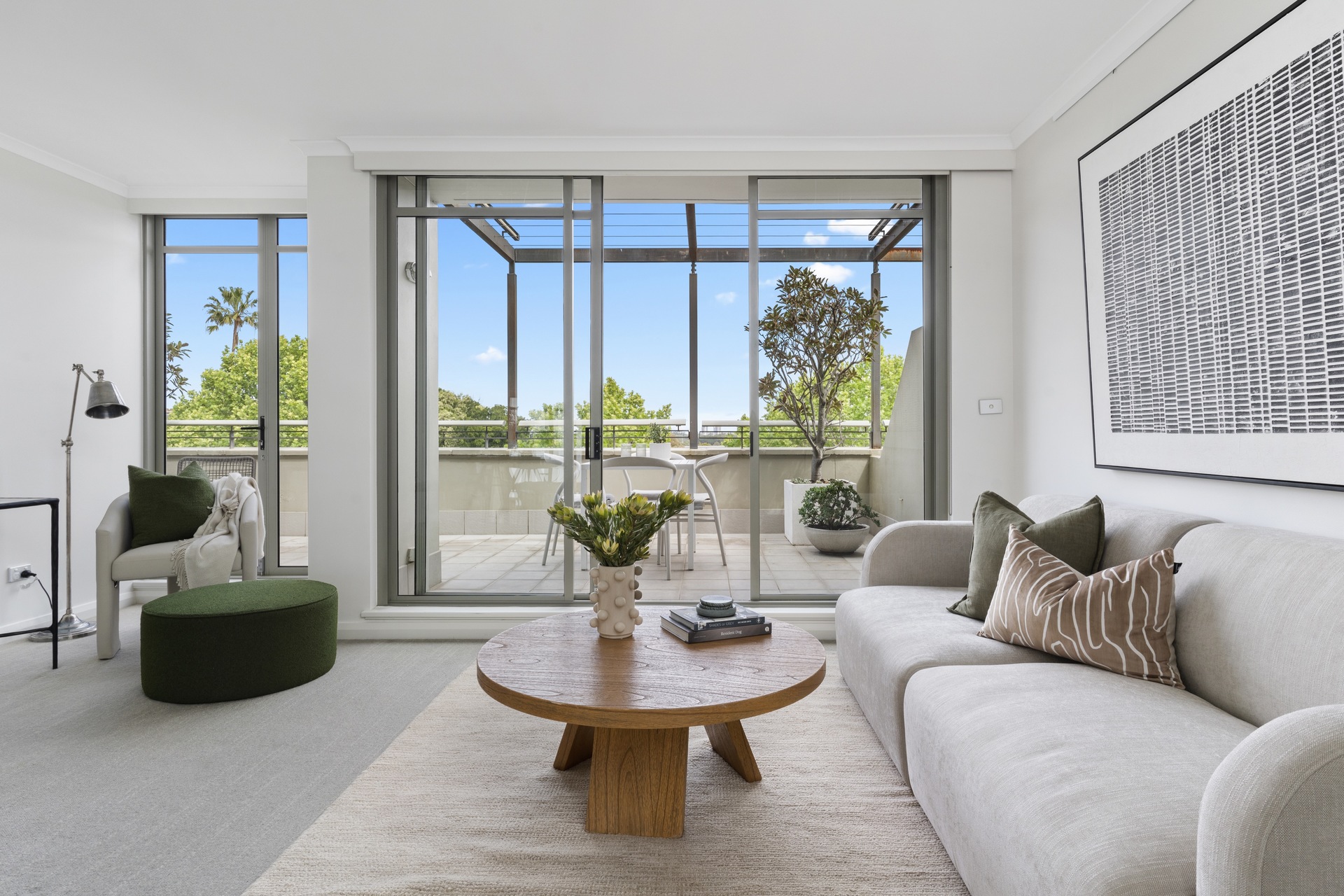 offers a quiet retreat with freshly appointed interiors and leafy district outlooks over Victoria Barracks. It makes an easy-maintenance home with a large outdoor space and a relaxed in/outdoor quality.