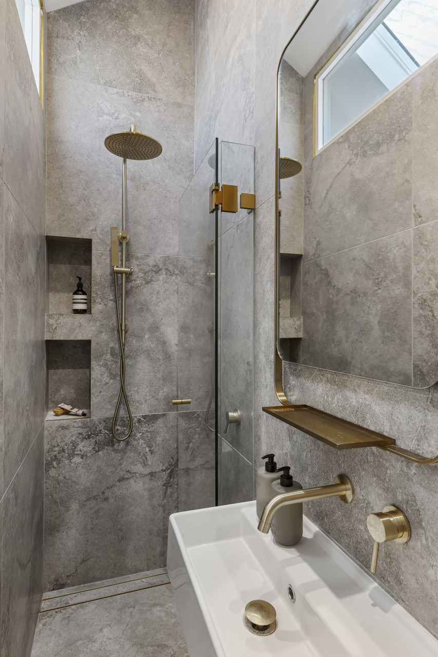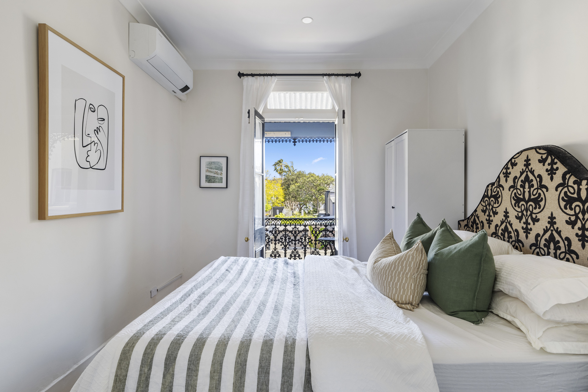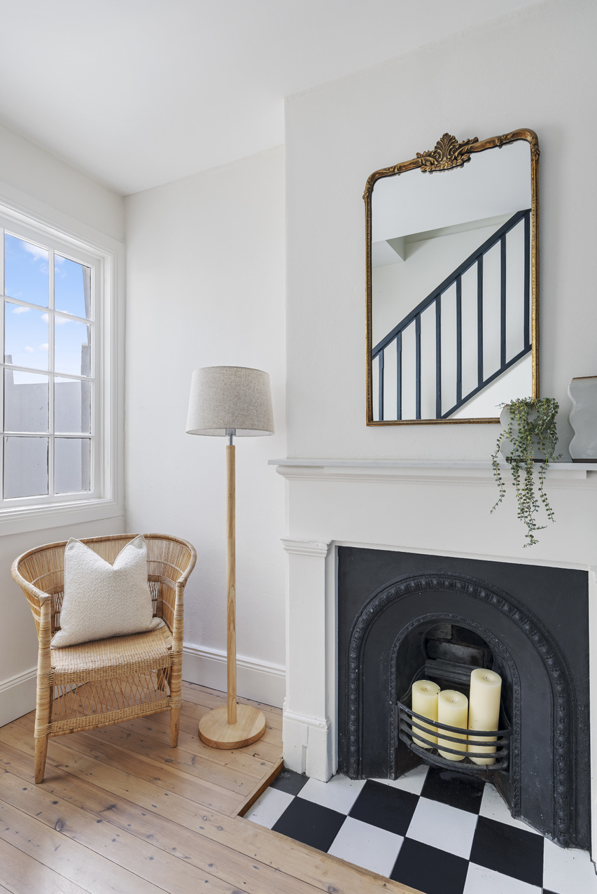 - Custom steel-framed French doors - Suntrap north-facing pocket garden - 2 upstairs bedrooms, built-in robes - Main with a fireplace and balcony
