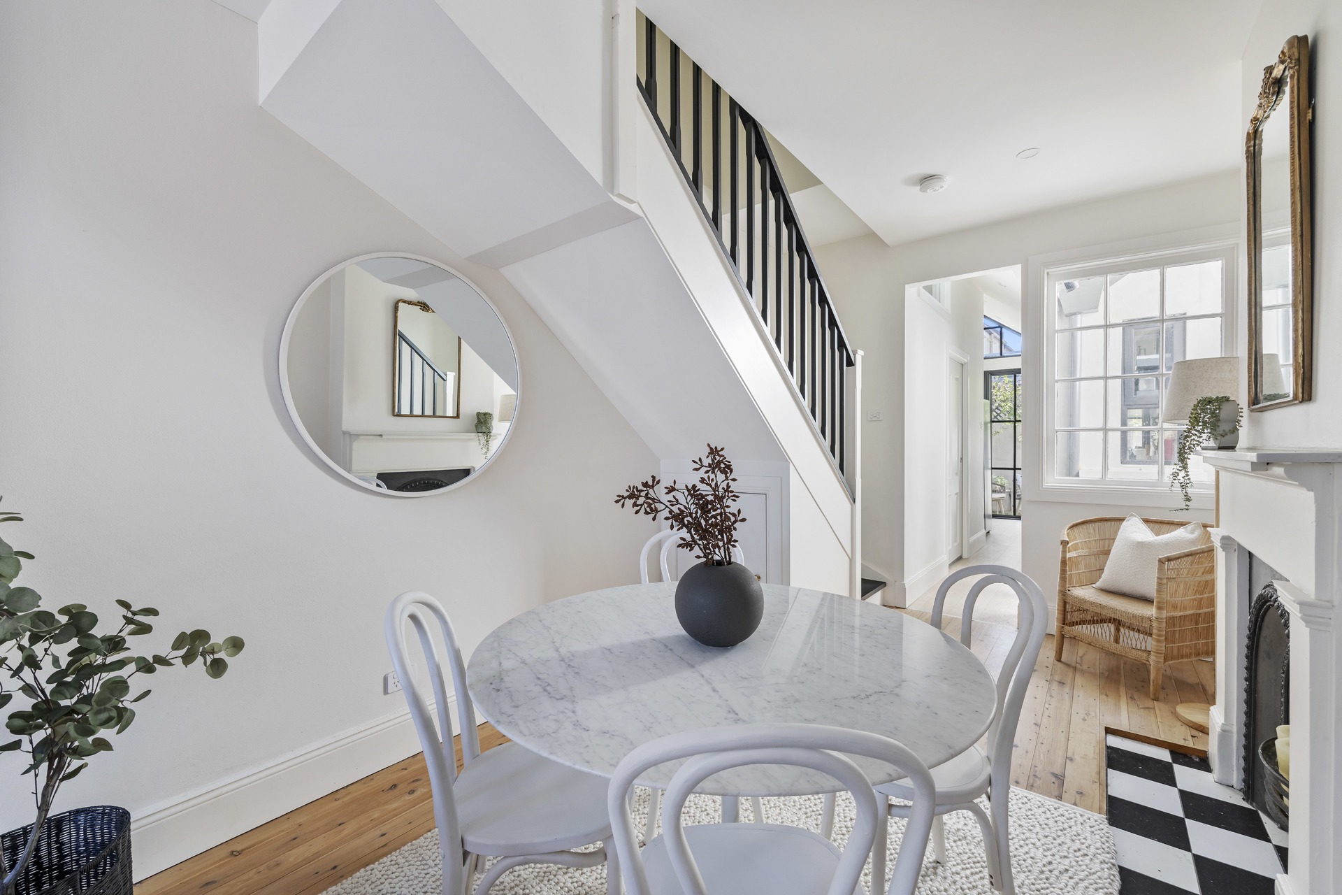 - Limewashed floorboards, high ceilings - Fluid open plan living and dining