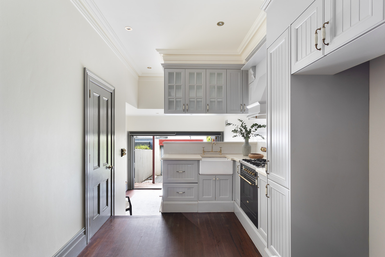 * Family area flows to sunny rear c’yard * Designer kitchen, Ilve s/steel gas stove * 4 bedrooms with b/ins: 2 with balcony * 2 bathrooms, main with clawfoot bath * Concealed laundry, air-conditioning * 2.9m high ceilings, polished floorboards * Basement storage with internal access * Sunny courtyard with parking and RLA