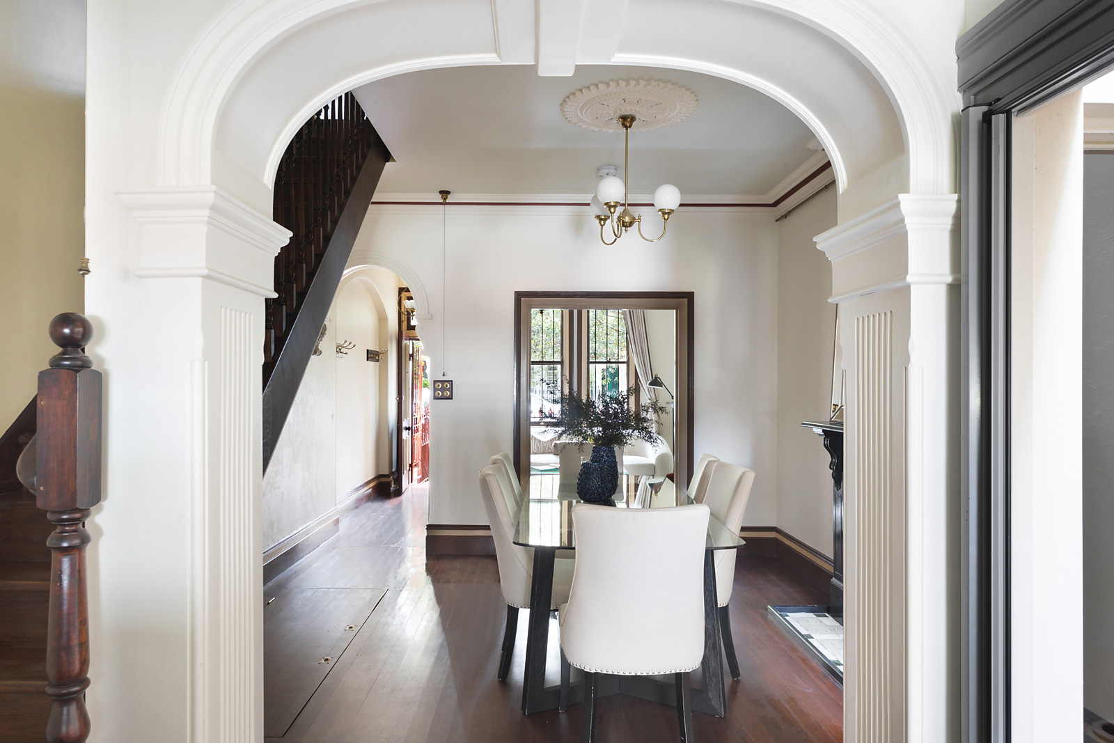 Traditional hallmarks define the gracious interiors of the four-bedroom home with a modern kitchen, multiple living and dining areas and district views from the upper levels, while the dual-frontage block provides parking accessed on Hopetoun Lane.